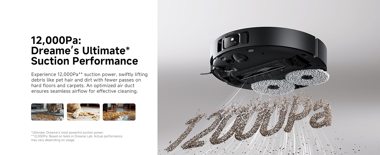 12,000Pa of Forceful Sweeping: The industry-leading 12,000Pa* suction eliminates hair, dirt, and debris for a cleaner home. An optimized air duct design ensures efficient airflow, keeping the passageways unobstructed for a smooth cleaning session.