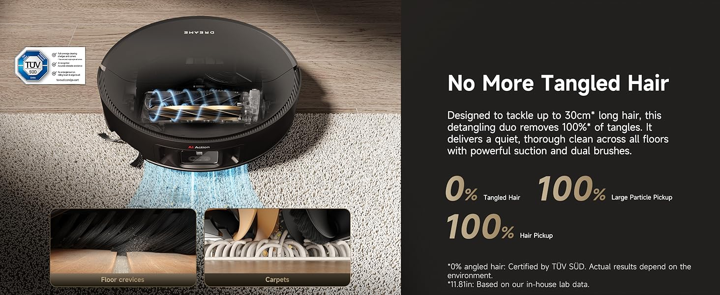 Tackle Messes in Corners: X50 Ultra extends both brush and mop to reach corners and low spaces under furniture. The redesigned brush minimizes hair tangling, ensuring a thorough clean in areas most vacuums miss.