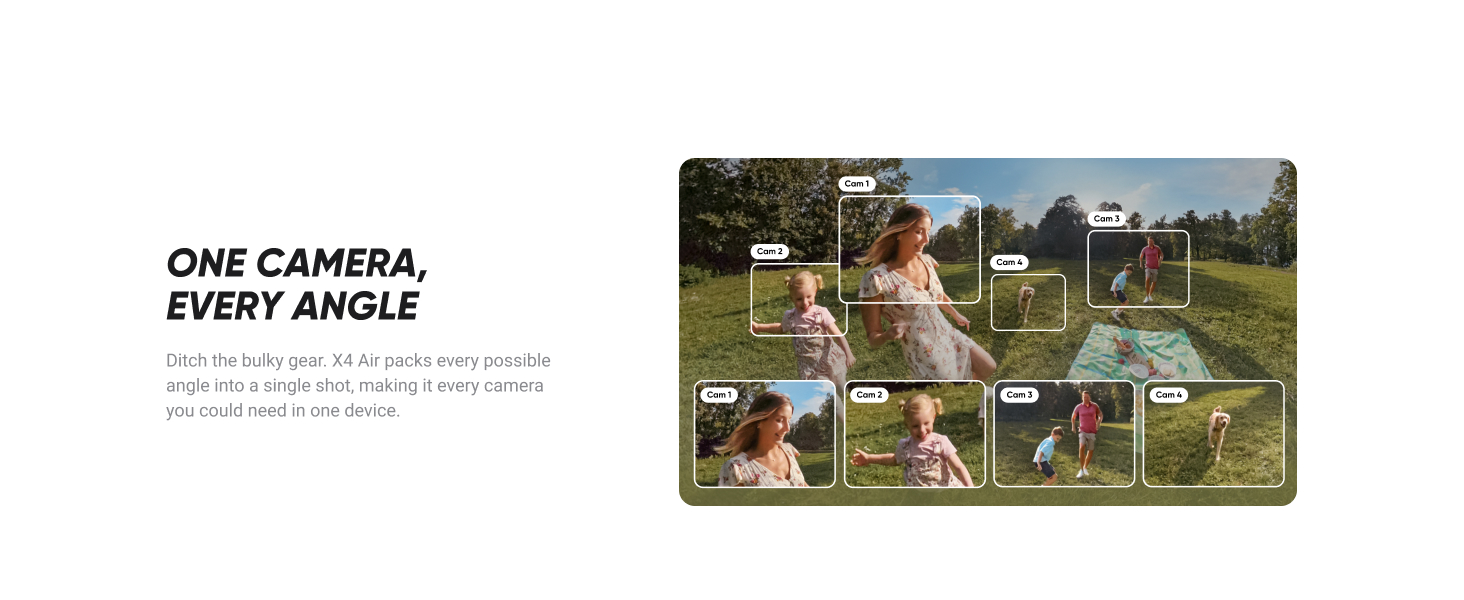 Shoot First, Frame Later: Never aim the camera, always get the shot. Just hit record, live in the moment, and pick the best angles later with easy reframing tools in the Insta360 app.